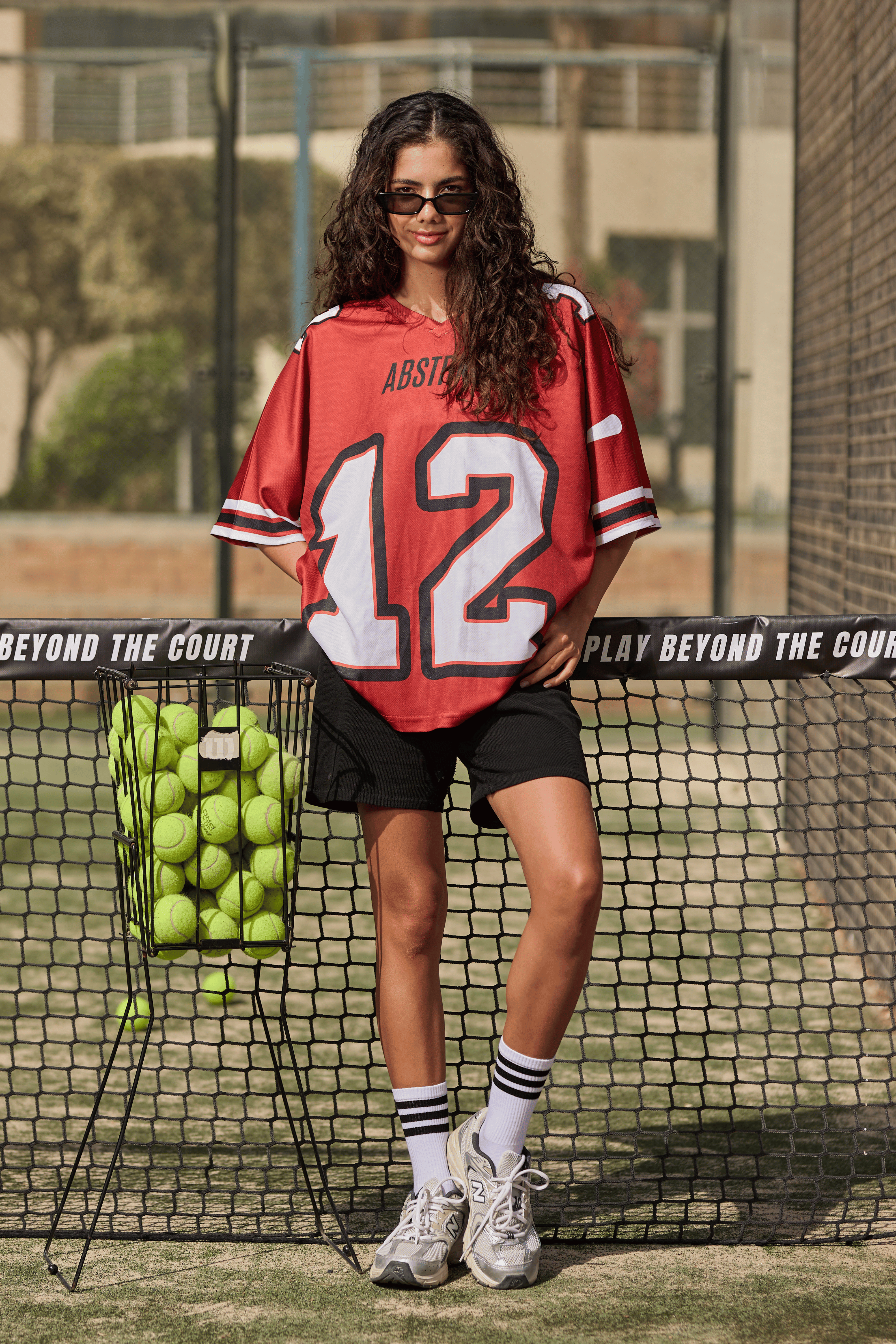 The Red 12’ Jersey fuses classic sports energy with streetwear attitude, built for athletes and creators who move with intent. Its mesh cotton fabric breathes while you grind, and its oversized cut gives you room to own your presence.